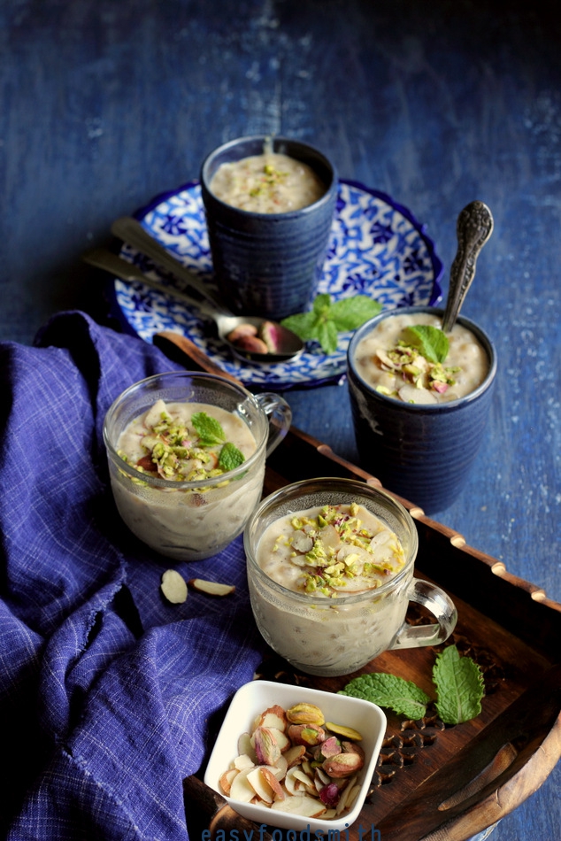 Note: Don’t try and thicken this kheer as the gummy textured sago will thicken it once it begins to cool.
